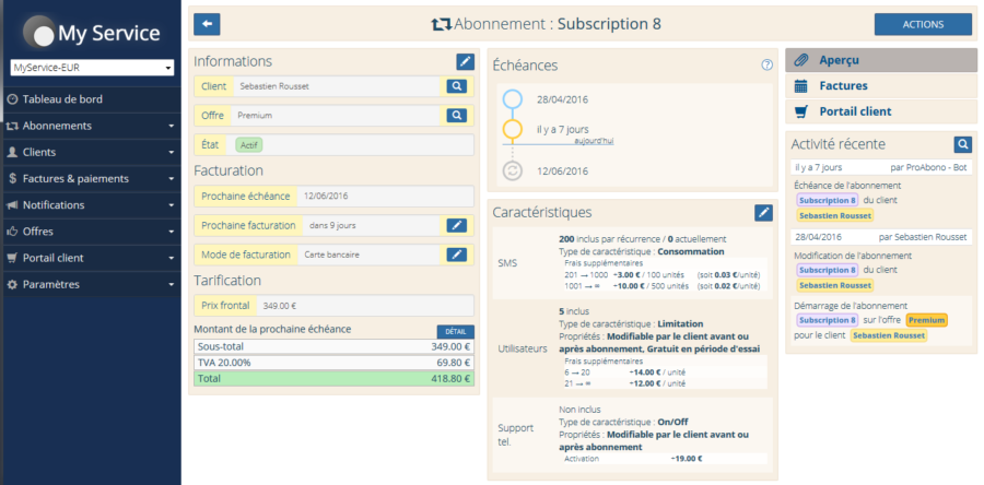 La plateforme de la start-up, ProAbono, montpelliéraine permet de construire facilement des modèles de revenus complexes, d’automatiser la souscription en ligne, l’encaissement, la facturation et le support client. Son moteur de tarification évalue en temps réel les montants de vos abonnements, quel que soit la complexité du modèle de revenu. Il calcule par exemple le montant des taxes selon les informations de facturation et la législation en vigueur.