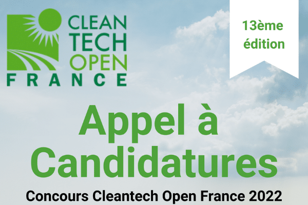 Jusqu’au 15 mai 2022, les startups cleantech engagées dans à la transition environnementale, énergétique et climatique, sont appelées à déposer leur dossier de candidature pour participer à la 13e édition de Cleantech Open France. Pendant un an, les 9 lauréats bénéficieront, entre autres, d’un accompagnement personnalisé par les experts du réseau Cleantech Open France, un écosystème aux nombreuses opportunités. Le gagnant participera à la finale internationale qui se déroulera dans la Sillicon Valley fin octobre 2022. À la clé : une dotation de 5 000 USD.
