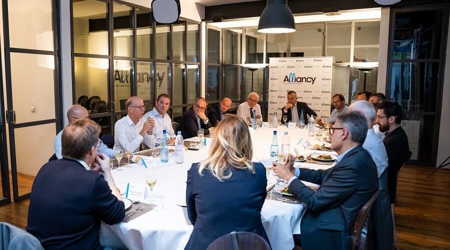 Nous remercions nos invités pour leur présence à ce dîner-débat et pour s’être prêtés au jeu des échanges et du partage, ainsi que nos partenaires, qui ont permis l’organisation de ce diner. En écho à son crédo « travailler ensemble pour innover plus vite », la rédaction d'Alliancy a créé les diners de la rédaction. Ce sont des soirées d’échanges, de débats et de prospectives qui réunissent 10 à 15 invités, les dirigeants qui construisent, jour après jour, la révolution numérique de leur entreprise. L’objectif : se rencontrer, partager ses problématiques, s’inspirer et réfléchir ensemble aux grands défis auxquels ils font face.