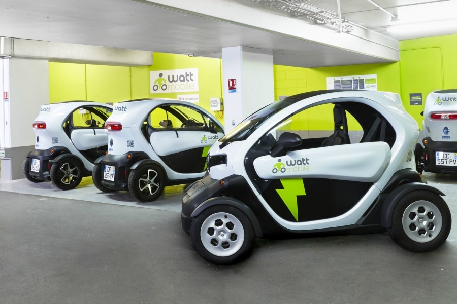 Wattmobile propose une flotte de véhicules électriques disponibles dans les gares pour les professionnels qui se déplacent régulièrement en train et ont des rendez-vous en centre-ville, facilitant ainsi la gestion des derniers kilomètres tout en préservant l’environnement. La start-up créée en juillet 2010 et devenue aujourd’hui une SAS, propose deux types de véhicules. La Twizy peut accueillir 2 personnes, elle est équipée de 4 roues et d’un habitacle fermé comme une voiture mais mesure seulement 1 mètre 20 de large et 2 mètres 30 de long ce qui lui donne une certaine agilité en milieu urbain. E‑Vivacity est un scooter électrique équivalent à 50cc et peut se conduire sans permis. Fort d’un partenariat noué avec la SNCF, ces véhicules sont disponibles dans actuellement 11 gares des grandes villes françaises comme Paris, Lyon, Marseille, Toulouse ou Bordeaux. Wattmobile a mis en place une plateforme de réservation en ligne, disponible sur smartphone ou sur des bornes tactiles et propose une tarification au quart d’heure.