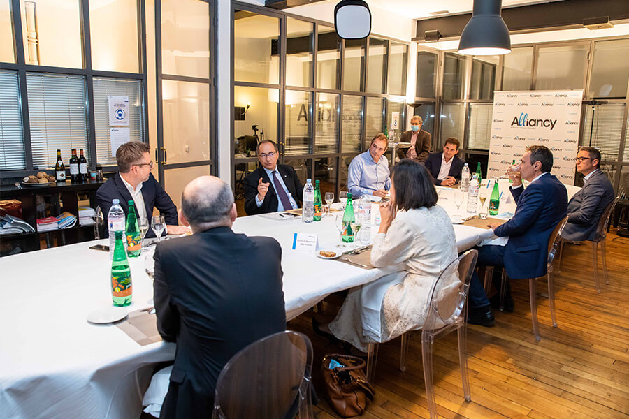Nous remercions nos invités pour leur présence à ce dîner-débat et pour s’être prêtés au jeu des échanges et du partage, ainsi que nos partenaires, qui ont permis l’organisation de ce diner. En écho à son crédo « travailler ensemble pour innover plus vite », la rédaction d'Alliancy a créé les diners de la rédaction. Ce sont des soirées d’échanges, de débats et de prospectives qui réunissent 10 à 15 invités, les dirigeants qui construisent, jour après jour, la révolution numérique de leur entreprise. L’objectif : se rencontrer, partager ses problématiques, s’inspirer et réfléchir ensemble aux grands défis auxquels ils font face.