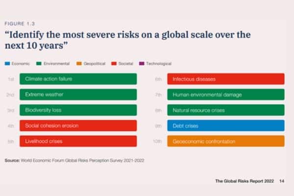 Dans le cadre du rassemblement annuel des grands dirigeants économique du monde, le WEF interroge les Directeurs et propose tous les ans (depuis 2006) une liste de risques à prendre en compte. En 2022, le risque Cyber est dans le chapitre Technologique et n’est pas mentionné dans les risques pour les 10 prochaines années.