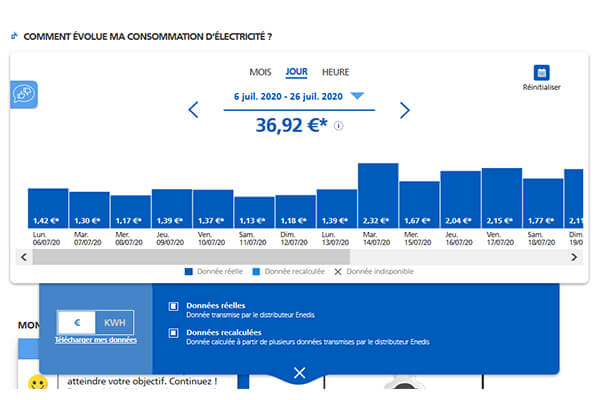 3/ Une meilleure compréhension de sa consommation d’énergie (Mes Eco et Moi) est possible pour pourvoir agir dessus grâce à e.quilibre, à condition d’avoir accordé le consentement pour la collecte de ses données fines (quotidiennes ou à la demi-heure). Des outils qui peuvent permettre de faire jusqu’ à 12 % d’économies sur la facture.