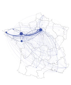 Une œuvre de Vasarely ? Une représentation futuriste d’un indicateur de chemin de fer ? Un feu d’artifice géant ? Rien de tout cela. Les cartes établies par le pôle de compétitivité breton Images & Réseaux reflètent les coopérations entre ses membres et les centres de recherche qui lui sont associés. Au-delà de son aspect graphique surprenant, cette démarche est assez révolutionnaire.