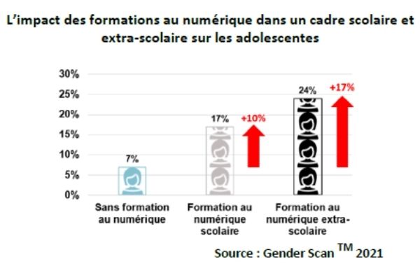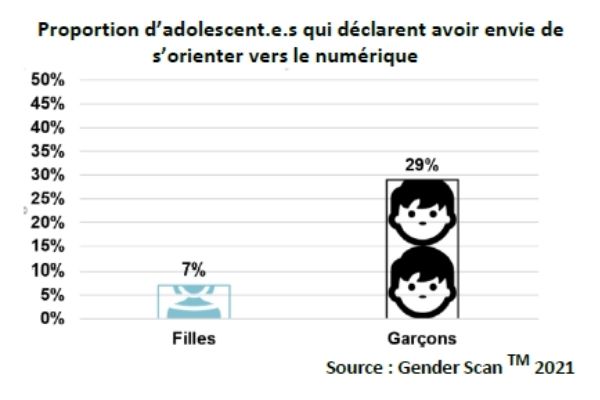 - En 2021, moins de 7% des adolescentes envisagent spontanément de s’orienter vers le numérique