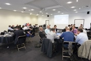 Photo-kFlow-diaporama-article Idriss Aberkane, jeune normalien expert en neurosciences cognitives et Serge Soudoplatoff, polytechnicien qui a fait carrière chez IBM, Capgemini, puis Orange avant de créer plusieurs start-up, sont les fondateurs de Scanderia, une jeune pousse qui a conçu K-Flow, jeu multijoueur consistant à résoudre collectivement une question de stratégie d’entreprise. Le serious game s’appuie sur une carte numérique autour de laquelle les joueurs en équipes, réunis dans une salle, interagissent via leurs PC. « K-Flow repose sur les neurosciences et combine les trois éléments de l’apprentissage que sont le “fun”, l’engagement, et la collaboration, souligne Serge Soudoplatoff. Le mélange de confrontation et de “fun” permet la mémorisation des stratégies et la création d’intelligence collective bien plus efficacement que des présentations ou des tableurs Excel ». Le jeu, commercialisé pour l’heure sous forme d’événements, a déjà convaincu de grands groupes comme Amundi, Orange International, Mazars, Jarden Home&Family ainsi que l’Association progrès du management (APM).