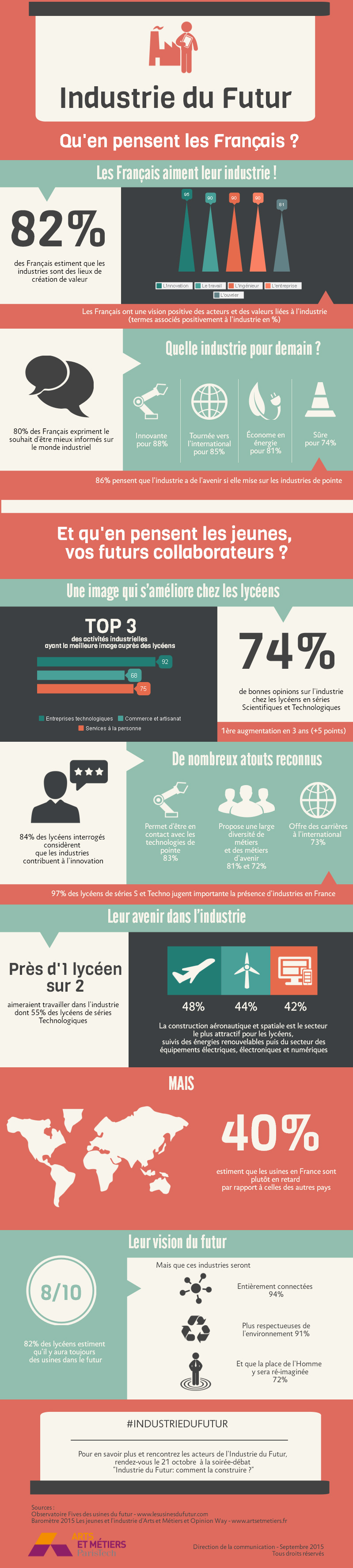 Arts et Métiers (anciennement ENSAM), qui fait partie des deux établissements contactés par le gouvernement pour intégrer l’Alliance Industrie du Futur, vient de sortir son baromètre 2015 sur l’intérêt et la vision des Français quant à l’industrie du futur.