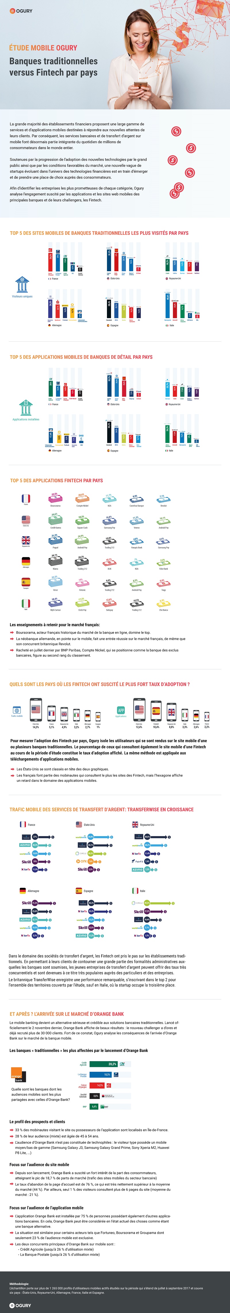 La grande majorité des établissements financiers proposent une large gamme de services et d’applications mobiles destinées à répondre aux nouvelles attentes de leurs clients. Par conséquent, les services bancaires et de transfert d’argent sur mobile font désormais partie intégrante du quotidien de millions de consommateurs dans le monde entier. Afin d’identifier les entreprises les plus prometteuses Ogury analyse l’engagement suscité par les applications et les sites web mobiles des principales banques et de leurs challengers, les Fintech.