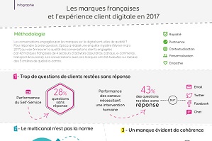 Ainsi, la qualité de la relation client digitale de 42 marques a été passée au crible : performances du self-service pour traiter les questions basiques ; qualité des conversations engagées sur les 4 canaux principaux nécessitant une intervention humaine (E-mail, Chat, Twitter et Facebook) sur la base de 5 critères : rapidité, pertinence, contextualisation, personnalisation et empathie. Enfin, la réalité de l’omnicanalité en 2017 a été mesurée.