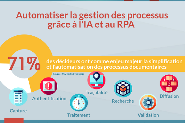 71% des décideurs ont comme enjeu majeur la simplification et l’automatisation des processus documentaires. 74% d’entre eux positionnent les robots conversationnels parmi les technologies qui contribuent efficacement à l’amélioration des processus clients, suivis de l’analyse sémantique à 60% et de l’intelligence artificielle (58%).