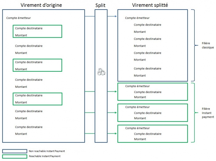 En effet, ce mode de paiement facilitera également les échanges BtoB. Pour ce faire, la banque devra offrir un service de routage intelligent lors de l’acquisition des paiements via les différents canaux EDI (eBICS, SWIFT, PeSIT, FTPS…). Ce système de split et routage intelligent doit permettre de traiter ces ordres via une filière prévue à cet effet.