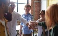Dans le métro parisien, devant la publicité de la société, toute l’équipe d’Alan, start-up cofondée par Jean-Charles Samuelian (PDG) et Charles Gorintin. Au total, elle a levé 75 millions d’euros depuis sa création fin 2016. (DR)
