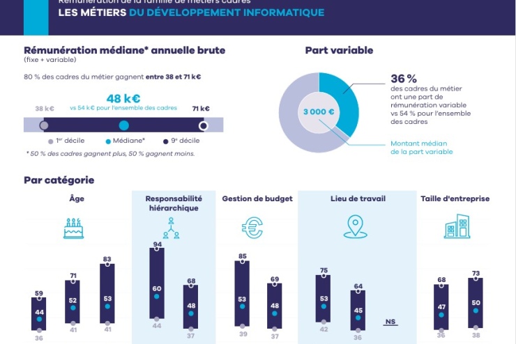 Figure 3 – Les métiers du développement informatique par catégorie (Source : Etude Apec Salaires des cadres dans 111 familles de métiers)