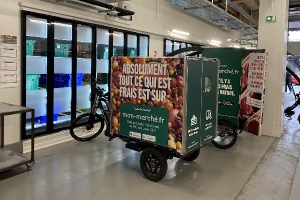 Avec des triporteurs électriques, silencieux, équipés de grosses caisses métalliques hermétiques, les livreurs desservent les clients habitants moins de dix minutes d’un atelier mon-marché.fr. La possibilité de venir récupérer sa commande en « Clic and cueillette » est aussi offerte aux clients. Mais un déficit de notoriété touche encore cette marque qui connait un taux de pénétration auprès de la population, assez faible. « J’estime qu’on n’est pas du tout connu, c’est mon grand drame, indique Carlos Pichel. Vous passez cent fois sur les Invalides, mais vous ne verrez jamais qu’il y a un atelier mon-marché.fr dans le parking »… Alors 4 % des habitants du quartier des Invalides ont déjà passé une commande sur l’application, déjà 12 % l’ont fait autour de l’emplacement de Puteaux ouvert seulement depuis août. Ce dernier a en effet pignon sur rue.