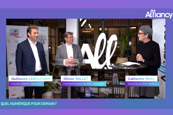 Pour ce premier Ă©pisode « Quel numĂ©rique pour demain ? », Alliancy s’est entretenu avec Olivier Vallet, directeur gĂ©nĂ©ral de Docaposte, la filiale numĂ©rique de La Poste, ainsi que Guillaume Leboucher, directeur gĂ©nĂ©ral d’Openvalue. L’occasion de comprendre comment Docaposte souhaite jouer la carte de la confiance numĂ©rique en rachetant l’annĂ©e dernière le cabinet de conseil Openvalue.Â
