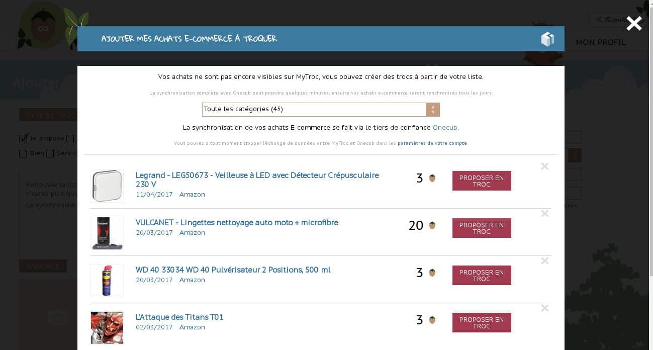 Vous avez des objets dont vous ne vous servez plus ? Que vous avez oublié que vous aviez acheté ?… MyTroc (ici, les fondatrices) permet de connecter votre compte Onecub et de proposer vos anciens Achat E-commerce en troc en un seul clic.