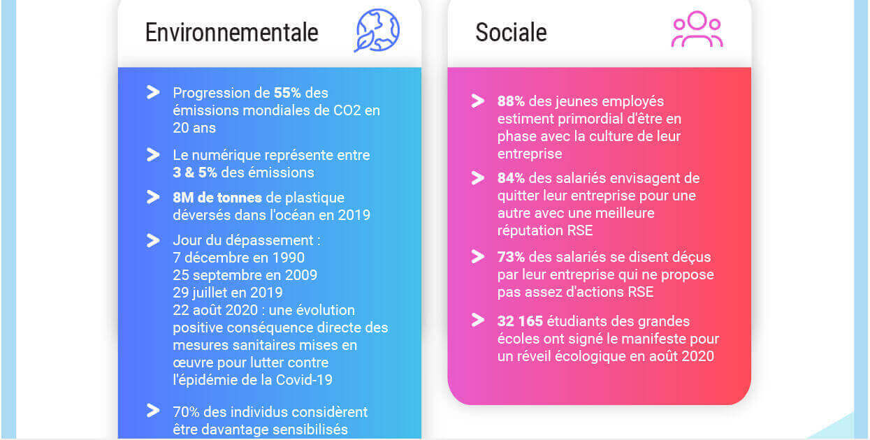 Keyrus a publié sa dernière infographie sur les tendances accentuées par la crise Covid-19. On y découvre notamment une progression de 55% des émissions mondiales de CO2 en 20 ans et que le numérique représente entre 3 et 5 % des émissions.