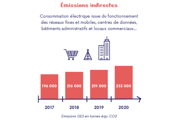 En revanche, les émissions de gaz à effet de serre indirectes, liées à la consommation électrique – responsables des deux tiers des émissions globales des opérateurs – progressent pour leur part, principalement en raison des déploiements des réseaux mobiles mais également de l’augmentation des usages sur ces réseaux.