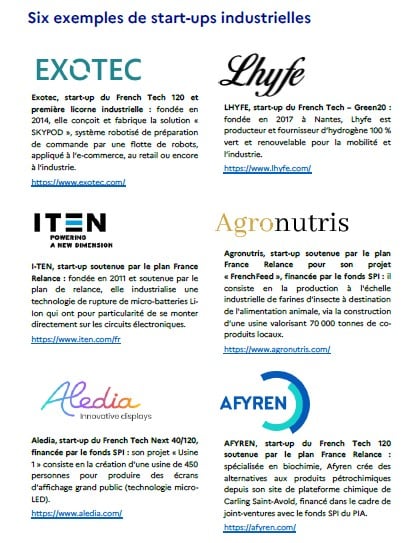 La France compte à ce jour 1 500 start-up industrielles, soit seulement 12 % du total de jeunes pousses technologiques françaises… Toutefois, leurs innovations technologiques (et parfois de rupture) concourent à la souveraineté française dans des secteurs stratégiques comme la robotique, l’énergie, l’électronique ou encore l’agrotech… Elles contribuent aussi à créer de l’emploi : selon le premier rapport d’impact réalisé par le cabinet Roland Berger sur le French Tech Next 40/120, les 15 principales start-ups industrielles pourraient générer 3 000 emplois à l’horizon 2025 et jusqu’à 10 000 en 2030.